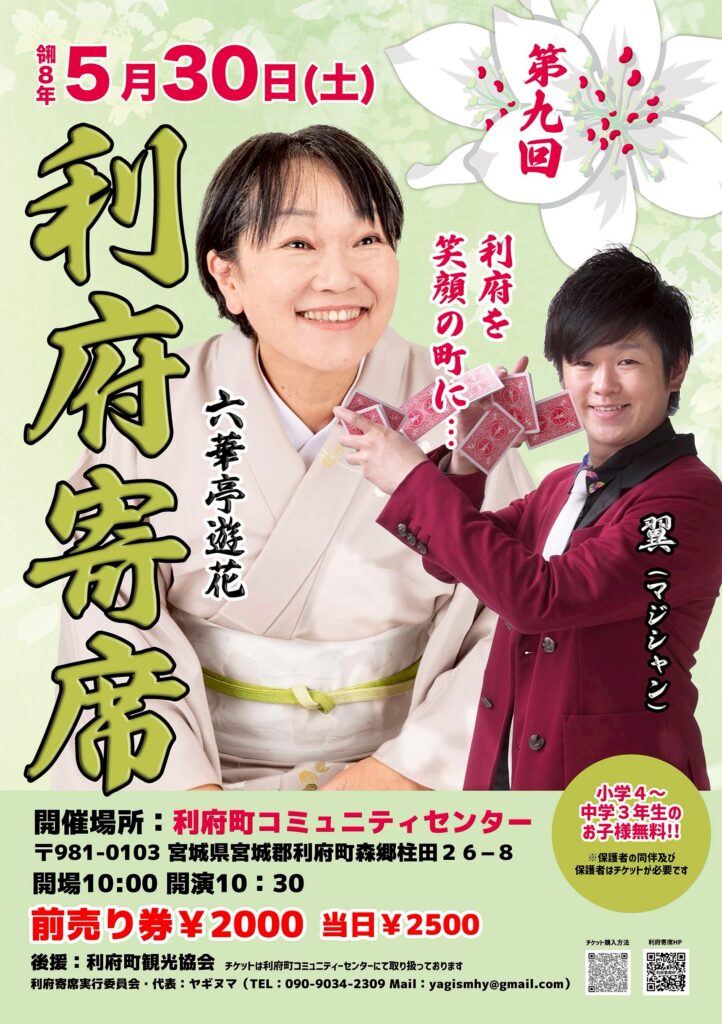 初夏のひとときを、利府寄席で笑って過ごしませんか? 皆様のご来場を心よりお待ちしております!
